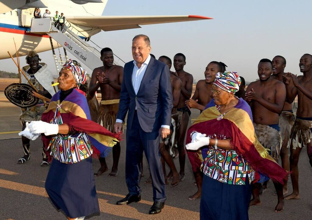 Глава МИДа России Сергей Лавров прибыл В Преторию (Африка) на саммит БРИКС, который пройдет в Йоханнесбурге с 22 по 24 августа. Очно Россию будет представлять глава МИД, президент Путин примет участие лишь по видеосвязи - как пишут наши СМИ, полноформатное участие. Глядя на эти кадры почетной встречи Сергея Лаврова, сразу же вспоминается Леонид Филатов: "Лондоны-Парижи смазали лыжи, царю остались послы пониже". А, судя по радостному лицу главы дипломатии великой сверхдержавы, перед которой трепещет весь мир, нам всё нипочем и всё только к лучшему: и африканские пляски с бубнами и свистульками вместо рукопожатий лидеров самых развитых стран мира, и БРИКС вместо G8, и обвал рубля, и зависимость от Китая, и дроны над Москвой. Трудности ведь закаляют, не так ли? Глава самой сверхдержавы все-таки решил не рисковать и обойтись присутствием по видеосвязи. Да, для нас эта бумажка МУС - только бумажка, которая ничего не значит, на которую никто вообще не обращает внимания, но удаленное участие