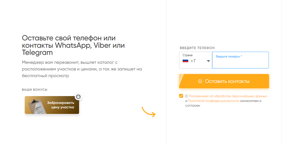 Яркий пример из нашей практики — продвижение загородной недвижимости. Типичная ситуация: вы изучаете на сайте характеристики объекта, но в момент, когда хотите узнать стоимость или планировку, появляется форма с требованием оставить контакты. Потенциального клиента, готового оценить продукт, перехватывает система сбора лидов, ограничивая ему доступ к информации.