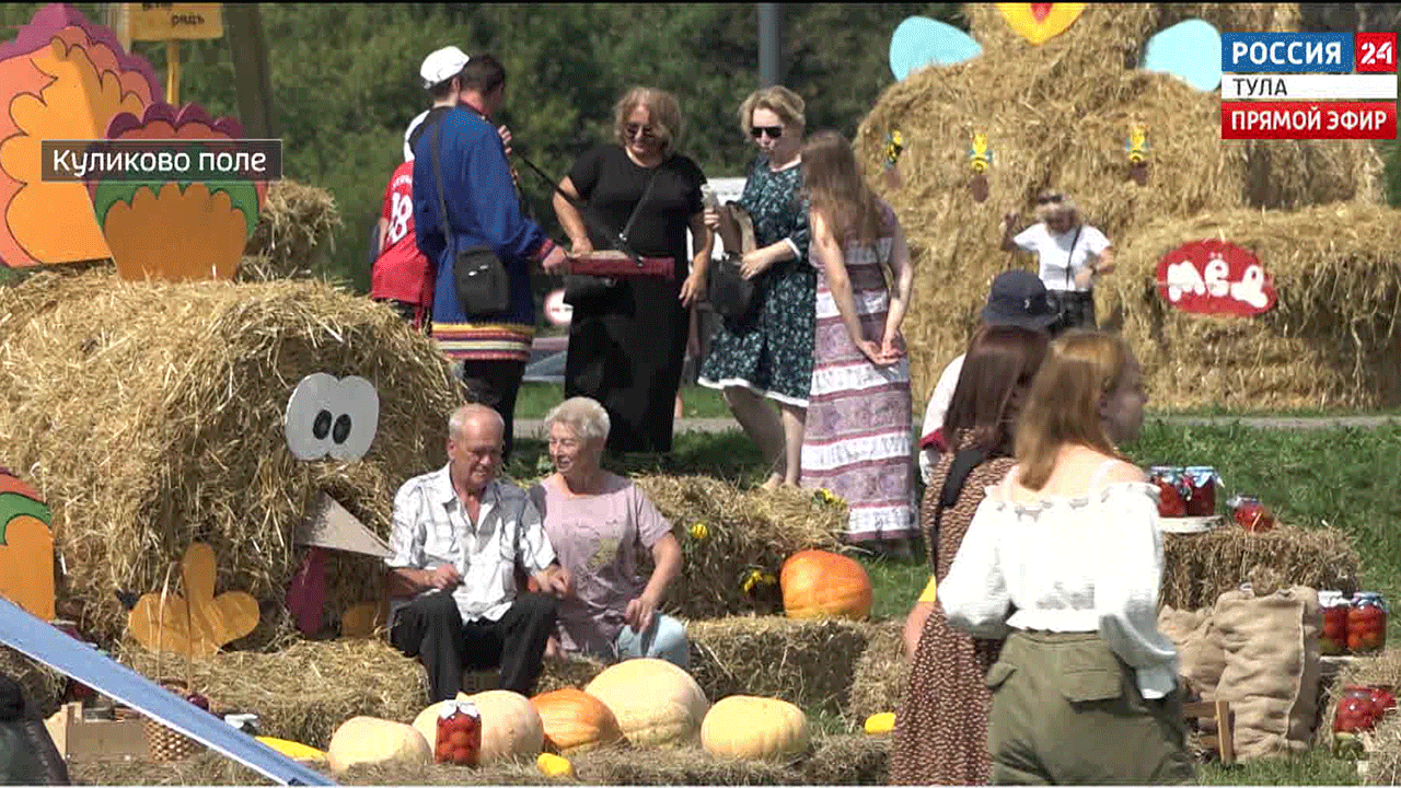 На Куликовом поле состоялся самый солнечный народный фестиваль «Сено-солома». Тёплый, по-домашнему уютный праздник со вкусом и ароматами лета состоялся на Конном дворе в селе Монастырщино уже в третий раз. В этом году, как и в прошлом, на фестивале «Сено-солома» побывало много туристов, желающих познакомиться с исконно-русскими традициями и от души повеселиться. Посетители, в основном большими семьями, приезжали из Тулы, Новомосковска, Узловой и других городов Тульской области. Туристы от мала до велика приняли участие в веселых сельских играх. Наиболее популярной народной забавой стали сражения мешками, набитыми сеном. От визитеров, желающих научиться рубить саблей овощи да дров напилить, тоже отбоя не было. Равно как охотников пожарить блины на пеньках.