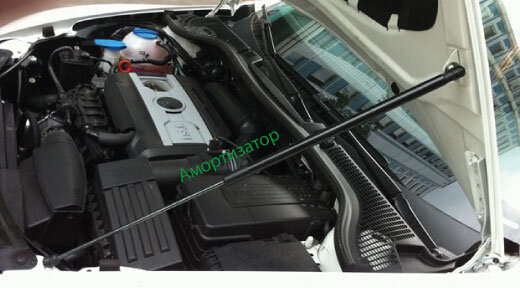 Многие владельцы Octavia A5 хотели бы поменять штатный упор капота на газовый амортизатор, так как капот на Октавии не самый лёгкий. Благодаря опыту Шкодоводов это можно сделать очень просто. Выглядит аморт вот так: Детали прекрасно подходят от Шкоды Суперб, а именно сам амортизатор и опоры крепления. Заказать запчасти можно, к примеру, в Ексисте. Коды деталей: Амортизатор капота - 3T0 823 359 - 1шт Опора амортизатора крышки багажника - 1J6 827 439 A - 2шт Так же понадобятся две гайки М8 и две шайбы с широким полем. Общая стоимость комплекта для установки амортизатора на капот шкоды октавии а5, составит примерно = 2500 рублей. Газовый упор, от Суперба, на Октавию устанавливается вверх ногами. Верхняя часть крепится в отверстие штатного упора, а нижняя, в отверстие ближе к радиатору. Также можно поставить дефлектор капота, благодаря потоку воздуха отводит от лобового стекла пыль и мошки и утеплитель капота, в холодных регионах полезная вещь, двигатель будет не так долго греться. Нижняя