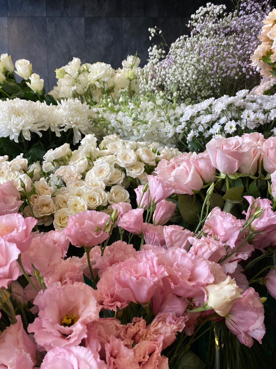 ✔️ Во-первых, выберите наиболее яркие и привлекательные цветы для создания основного акцента на витрине. Это могут быть розы, хризантемы, лилии или другие популярные срезанные цветы.