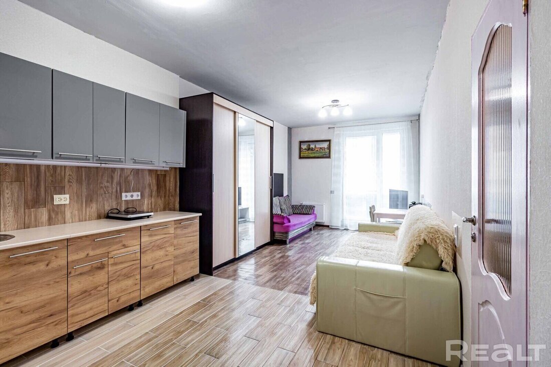 Изучили базу Realt, в которой можно найти тысячи квартир в Минск Мире. Стоимость голых новостроек-студий стартует от 30 тысяч долларов. А что если хочется заехать сразу после покупки? Самая дешевая квартира с ремонтом в Минск Мире стоит почти 50 тысяч долларов. Это студия на 30 «квадратов». Показываем, как она выглядит. Эта квартира-студия находится на 4-м этаже в доме «Стокгольм», построенном в 2021 году. Всего в нем 25 этажей. Дом находится в квартале «Северная Европа». Во дворе детский сад, а в соседнем квартале есть кофейни, парикмахерская и салон красоты. Рядом с домом остановка общественного транспорта. Общая площадь квартиры — 30 квадратных метров. В общем пространстве без особого зонирования находится кухня, небольшой стол, шкаф-купе, два дивана и телевизор. Из техники в кухне на фотографиях видна только маленькая электроплитка. В квартире есть застекленная лоджия. Вот так она выглядит. Санузел в квартире совмещенный. Установлена ванна. Есть стиральная машина. Стоимость кварти