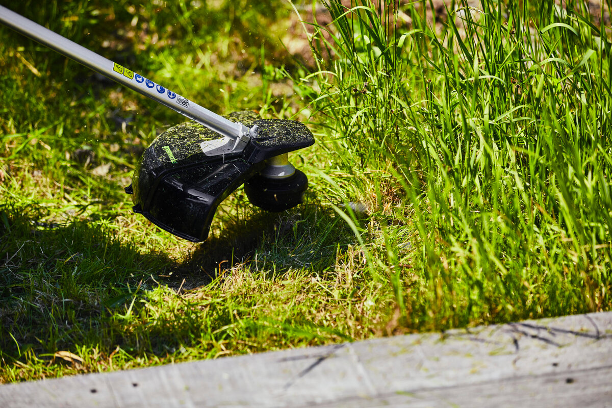 В труднодоступных местах и углах, а также на небольших участках траву можно скосить аккумуляторным триммером Greenworks GD40BCB. Благодаря входящему в комплект пильному диску он отлично справляется не только с разросшейся травой, но даже с крупным кустарником. Долгое время автономной работы (до 40 минут от батареи емкостью 4 А*ч) позволяет привести в порядок небольшой участок за один сеанс. Также, как и газонокосилка, триммер работает от аккумуляторной батареи 40 В, которую можно использовать с другими устройствами линейки 40 В.