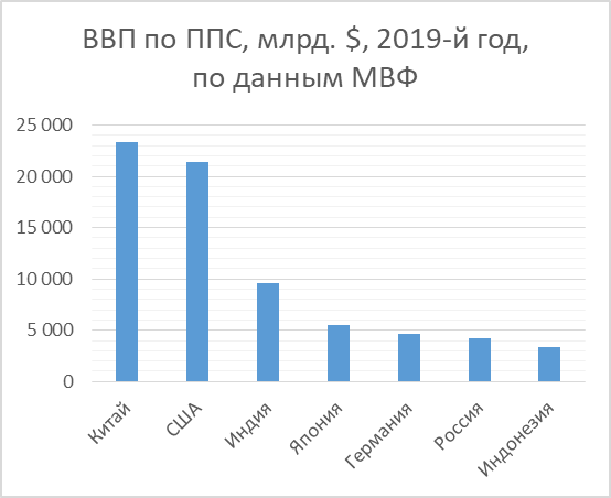 Сегодня с удивлением прочёл в новостях, что Россия в прошлом году вошла в пятёрку крупнейших экономик мира. Для начала немного контекста. "Крупнейшие экономики" - это страны с наибольшим ВВП. Однако, надо не путать общий ВВП и богатство отдельных людей. Высокий показатель ВВП страны может быть обеспечен не только её развитием, но и тем, что в ней просто много людей, которые производят много продуктов и услуг. Так, в Китае живёт 1,4 млрд. человек, а в США (которые Китай обогнал по общему ВВП) - всего 330 млн., вчетверо меньше.