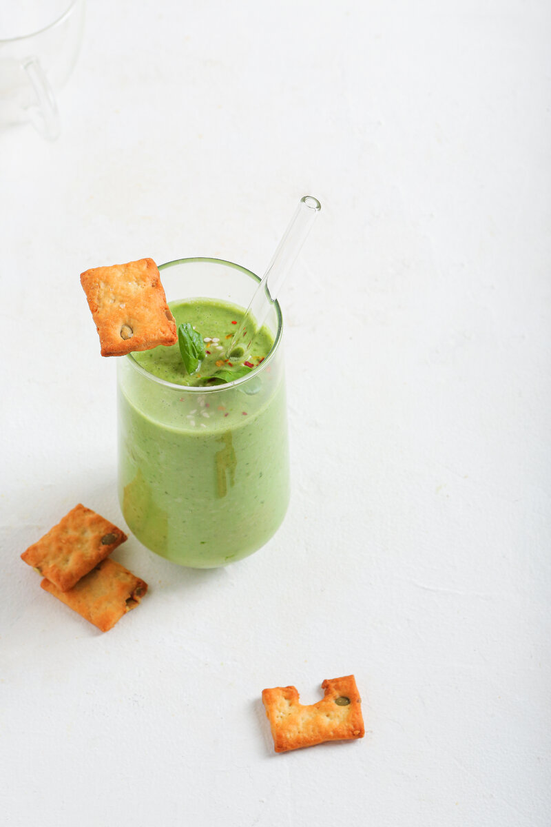 Ингредиенты: - 1 спелый банан - 1 киви - 1 груша - 1 небольшой огурец - 1 небольшой кусочек свежего имбиря (по вкусу) - Сок половины лимона - 1 молодого шпината - 1 стакан воды или кокосовой воды - Пара кубиков льда (по желанию) Приготовление: 1. Очистите и нарежьте банан, киви, грушу и огурец на небольшие кусочки. 2. Положите их в блендер. 3. Добавьте кусочек имбиря, сок лимона и лист шпината. 4. Залейте стаканом обычной или кокосовой воды. 5. Если хотите, чтобы смузи был холодным, добавьте пару кубиков льда. 6. Закройте блендер и взбейте все ингредиенты до получения однородной консистенции. 7. Если смузи получился жидким, добавьте еще кусочек фрукта или льда для густоты. 8. Перелейте смузи в стаканы и наслаждайтесь полезным и вкусным напитком. Это простой рецепт, который можно варьировать, меняя ингредиенты по своему вкусу. Кроме того, напиток можно украсить свежими фруктами или мятой для дополнительной красоты. Чудесным дополнением к смузи, станут Итальянские хлебцы с семенами подсо