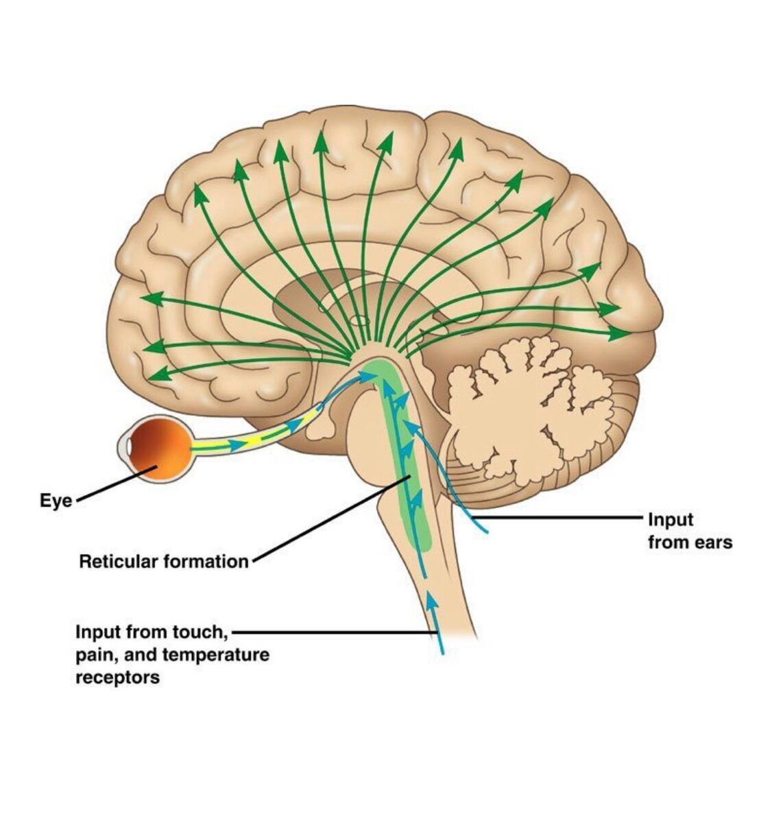 Исследования показывают, что активность ретикулярной формации находится в прямой зависимости от уровня бодрствования человека. В период бодрствования эта область мозга проявляет повышенную активность, генерируя импульсы, которые поддерживают состояние пробуждения и осознанности. Соответственно, именно в режиме бодрствования необходимо работать с этим отделом, но об этом позже.