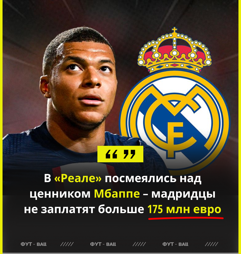 В «Реале» посмеялись над ценником Мбаппе – мадридцы не заплатят больше 175 млн евро.