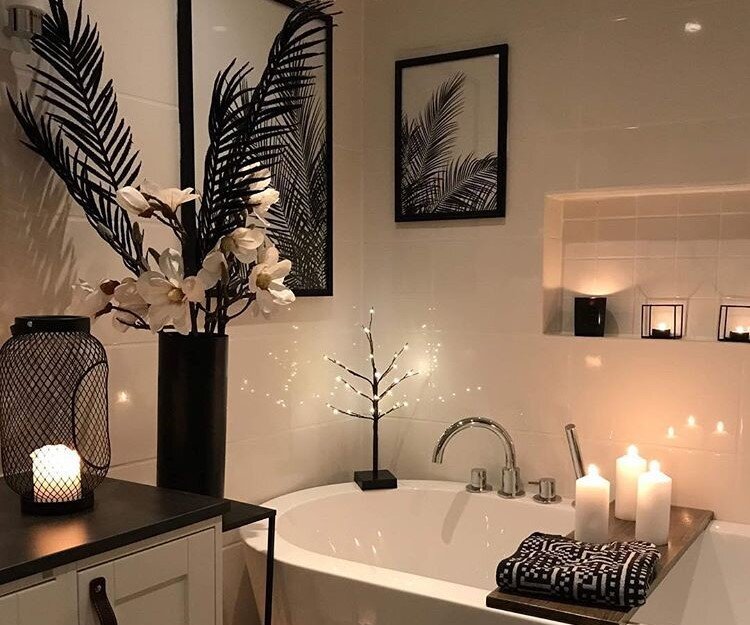 Ванная комната в основном рассматривается только с функциональной точки зрения как место, где выполняется повседневная гигиеническая рутина. Оформление помещения обычно ограничивается подбором плитки, покупкой шторки, коврика и, может, ещё набора подставок для мыла и зубных щеток. Между тем именно в ванной комнате мы настраиваемся на предстоящий день или готовимся ко сну, набираемся сил или, наоборот, отдыхаем душой и телом, в конце концов, можем побыть наедине с собой. Поэтому так важно уделить внимание декоративным деталям, которые помогут создать более уютную и расслабляющую атмосферу в этой части дома. Флора Расставить вазы с цветами и горшки с комнатными растениями - всегда удачная идея в оформлении интерьера, даже в ванной комнате. Однако повышенная влажность и недостаток естественного света делают обитание там живой флоры практически невозможным. Решением станут искусственные растения. Они просты в уходе и дают волю фантазии. Так, из отдельных веток можно хоть каждый день собир