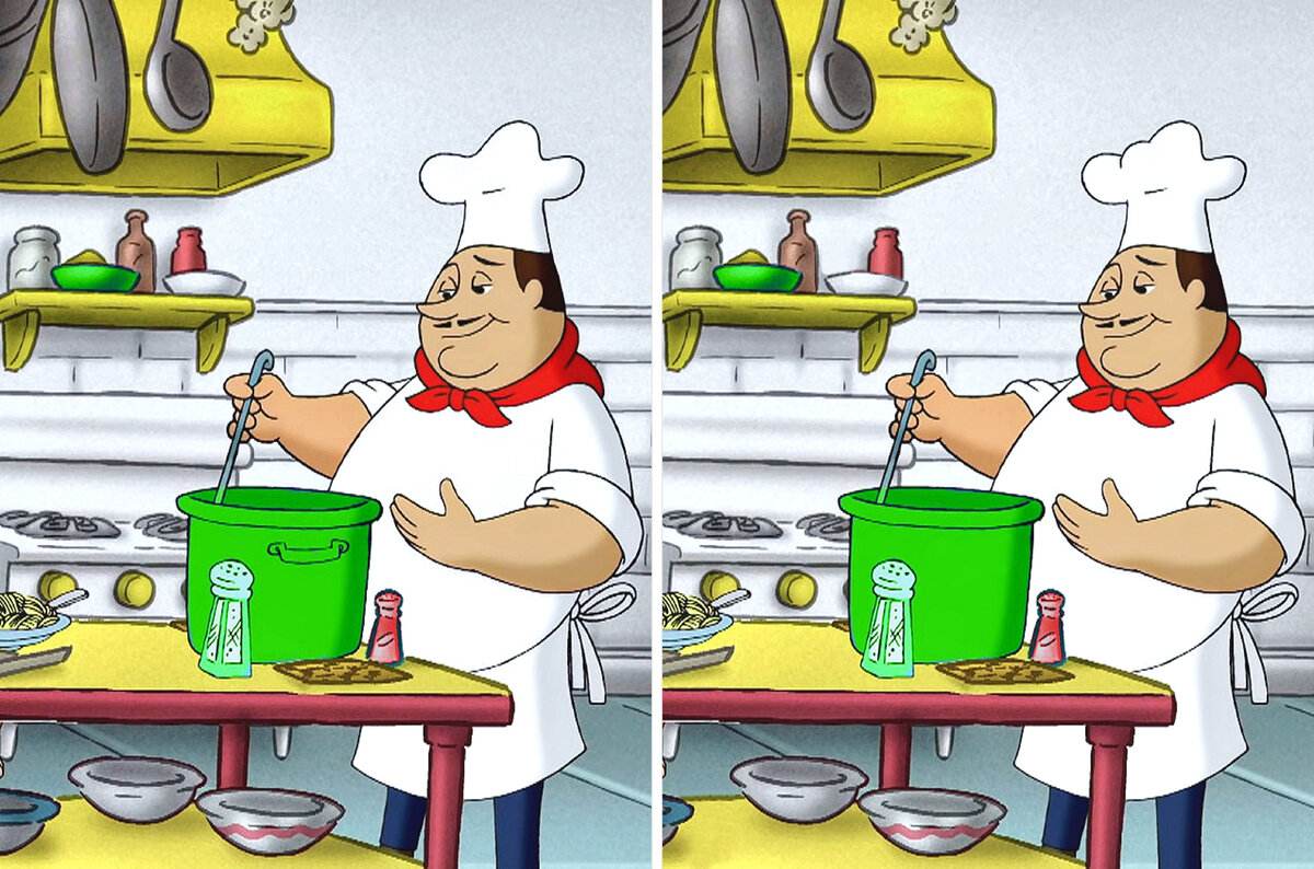 Встречайте новую ежедневную задачу из двух иллюстраций. Нужно сконцентрироваться на картинках с шеф поваром и отыскать между ними детали, которые отличаются. Задание. Найдите все 4 отличия на изображении. Пишите в комментариях, удалось ли вам найти все отличия❗❗ Подписывайтесь на канал, чтобы не пропустить интересные выпуски❗