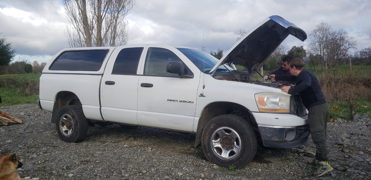 Ранний и подьем и выезд в дорогу в 7 утра. Сегодня съездили чуть дальше города Вальдивия посмотреть машину под заказ на ремонт и восстановление. Это Додж Рам 2500 , объем двигателя то ли 5,3 то ли 5,9 литра - впечатляет. Машина 2007 года продается по цене 800 000 рублей. Но тут надо менять коробку передач в сборе (старую пробили и ездили на машине без масла, естественно коробка от такой эксплуатации долго не прожила). Плюс видимо гонит масло из под турбины ну и по мелочам- надо перетряхнуть всю подвеску, кузовщина тоже требует особого внимания- по хорошему ее надо всю перекрашивать. Короче говоря машину использовали и в хвост и в гриву. Судя по фото предняя дверь заменена, или нет? Эксперты подтвердите прав я или нет?