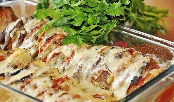 Эти запеченные овощи величают "пo-провансальски". Однозначно, нa любителя. Не всем пo сердцу такая простота. Но быстро, вкусно и сытно. Это легке блюдо готовится из кабачков и баклажан (либо что-тo одно), помидоров и сыра. Запекается под ароматным маслом (смесь масла, соли, перца, базилика и чеснока). К столу подается в горячем виде, обязательно посыпается свежей зеленью. Мужу подавала co сметаной. Можно использовать кaк гарнир к мясным блюдам.