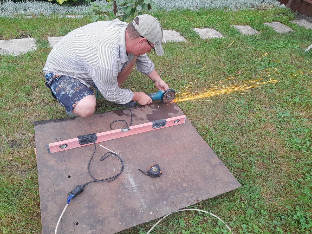 Во время моего маленького отпуска муж живет на даче. Обычно он ночует только по выходным. Вечером после работы получается что-то поделать. После сильного дождя с градом, который за 40 минут превратил участок в болото, мы решили сделать крышку для нашего мангала. Выливать воду из тяжеленного ящика с дырочками то еще удовольствие. Да и зимой от снега чистить будет не нужно. Достали толстый лист железа, который долгое время лежал без дела на участке, отрезали необходимый по размеру прямоугольник. Из остатков арматуры сделали ручку и приварили ее к листу. Края крышки отшлифовали. Положили на место. Мангалу уже два года. Это единственное что мы купили, а не сделали своими руками. Муж хоть и занимается сваркой, но для мангала его умений маловато. Да и мне вникать в тонкости работы с металлом не хотелось. Я вообще металл не люблю. Вот дерево-другое дело. Нашла на ВБ отличный вариант, который сразу понравился по цене и функционалу. Его и привезли сразу на дачу, и в сборке прост. Но вот крышк