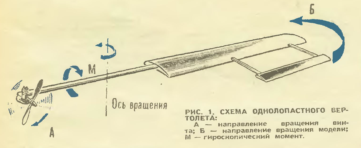 Гироскопический эффект трудно оценить, поэтому подбор винтов в каждом конкретном случае требует большой экспериментальной работы. Но использование его безусловно заманчиво: не нужно устанавливать специальные автоматы. Модели однолопастной схемы, однако, лучше перебаллотировать, уменьшая установочный угол стабилизатора. Командный механизм в этом случае — таймер, при его срабатывании и изменяется режим полёта.