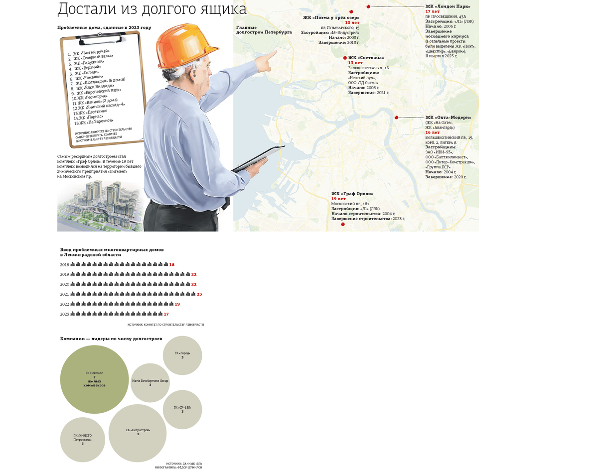 За 7 месяцев 2023 года в петербургской агломерации введено в эксплуатацию 15 проблемных домов: два в городе и 13 в Ленинградской области, сообщили "ДП" в администрациях регионов. При этом в Петербурге долгостроев совсем не останется уже в декабре, обещают в Смольном.