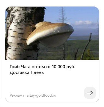 Хорошая реклама, правда? Вот только на фото не чага, а гриб трутовик! Интересно, тот, кто делал эту рекламу, хоть поинтересовался, как выглядит чага? Тот, кто продает чагу, видел эту рекламу? А если видел, то сам знает что продает? Неужели найдутся покупатели на гриб трутовик ( который кроме как на трут, ни на что не годен и потому не стоит ни копейки), по цене лекарственной чаги!