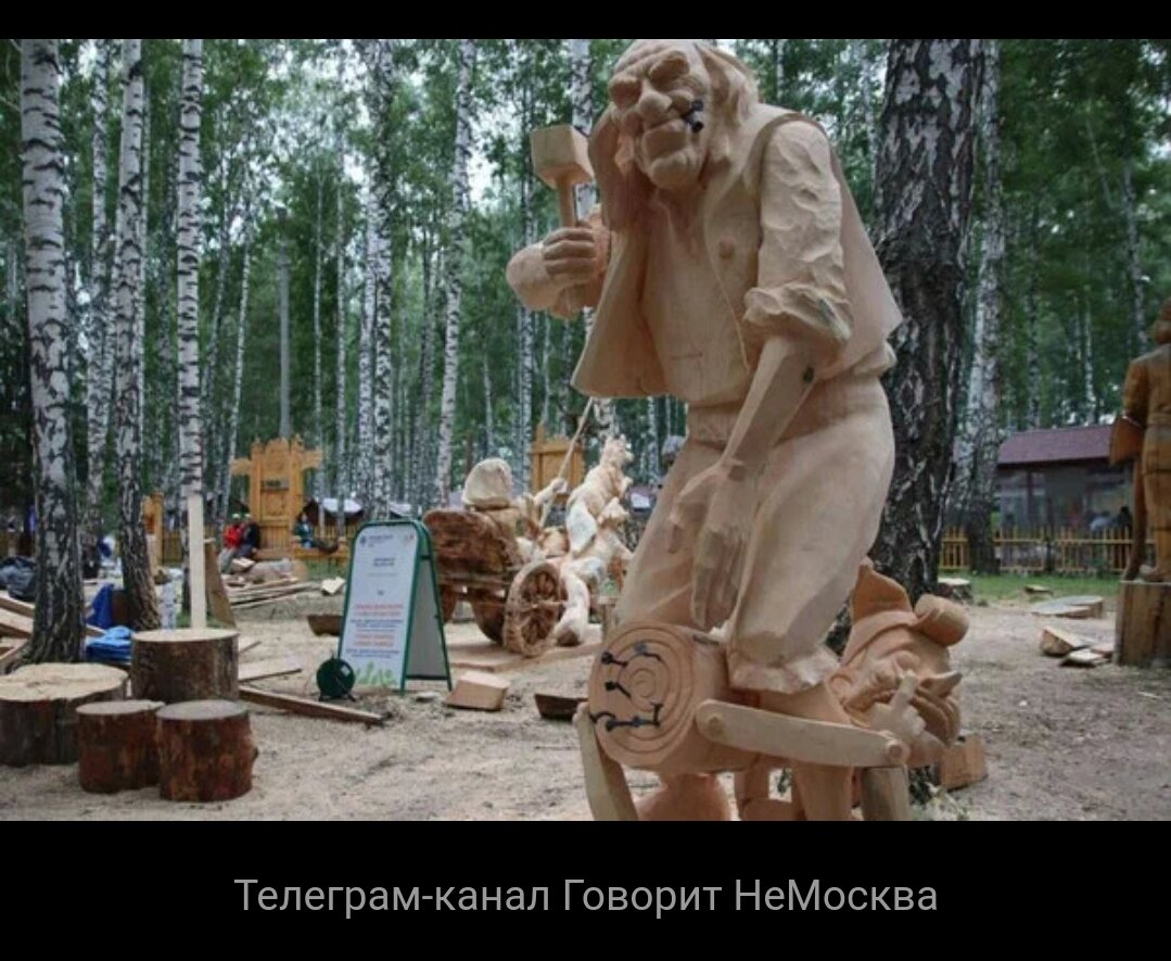 Тут культурное событие случилось. Фестиваль «Праздник топора» в Томске. Там прошёл конкурс деревянных парковых скульптур. Победила работа под названием "Воспитание" автор Матерков. Фамилия говорящая) Скульптура изображает папу Карло, который наказывает Буратино за непослушание, вбивая в него гвозди. Прямо в то, что можно считать попой Буратино. Автор денежный приз за победу планирует пропить или купить на него новые сапоги жене. Никакого смысла там нет, работа сделана по карикатуре, просто показал мастерство свое, то, что умею, как умею владеть резцом, работать с деревом. Приз пропью. А что с ним делать еще? Ну, куплю жене сапоги Об этом резчике по дереву очень хорошо отзываются коллеги. И по работам видно, что он мастер. Александр - величина Российского значения в мире деревянной скульптуры. Александр Матерков не просто велеколепный скульптор. Это Маэстро "прикольного" жанра, хулиган и балагур в хорошем смысле. Среди его работ вы не найдёте скучных, статичных, академическ