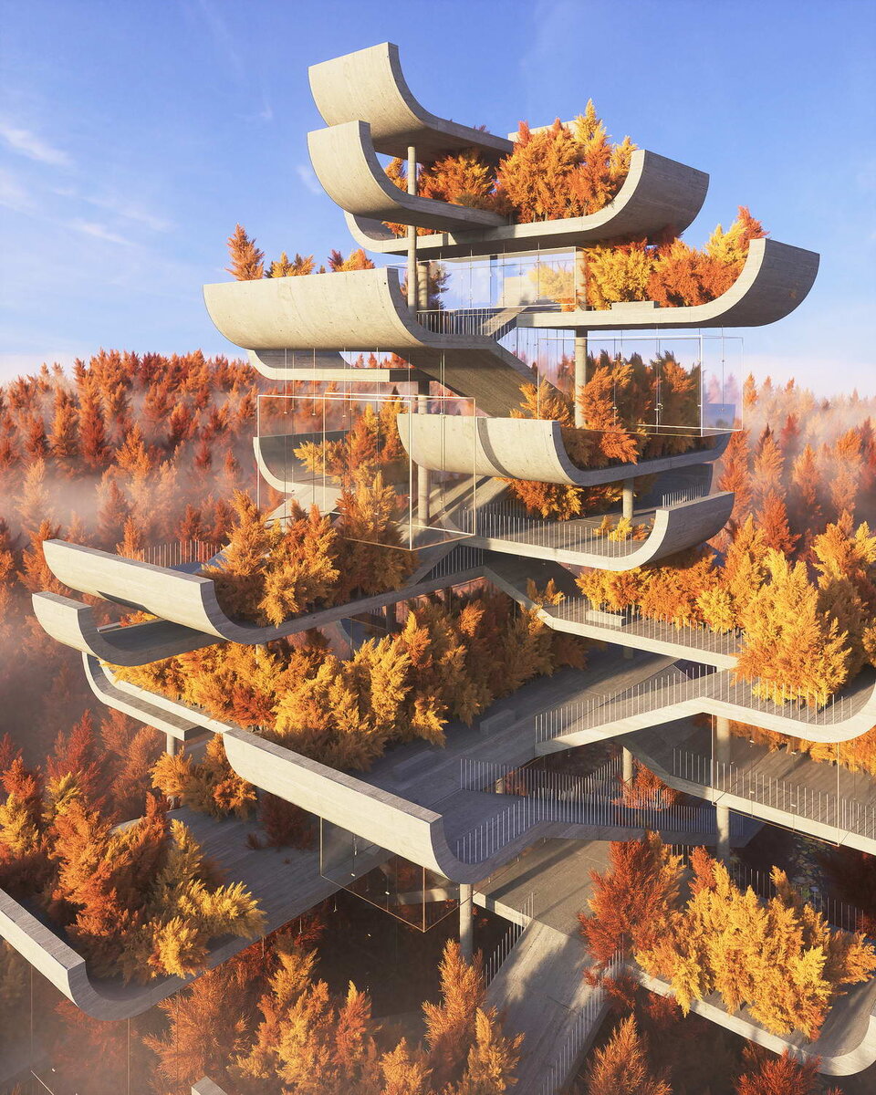 Разные, но замечательные работы! Это - маленькая часть нашей уникальной коллекции, в которой сейчас более 8000 лучших домов со всего мира. В выборе нет никакой закономерности - проекты отобраны случайно. *** 1. Нереальная архитектура: модернистский взгляд на пагоду Шанхайский дизайнер представил проект, который переосмысливает традиционную китайскую пагоду в модернистском стиле. Вымышленная реинтерпретация разработана как дань уважения к отточенной столетиями форме здания, в значительной степени не тронутой модернизмом, с необработанным грубым бетоном, минимальным орнаментом и смелыми геометрическими движениями. Структурные бетонные колонны заменяют традиционные деревянные конструкции, в то время как знаковая крыша-пагода реинкарнирована в расширяющихся бетонных плитах. Зелень украшает структуру, создавая поразительный контраст между внушительной жесткостью бруталистической структуры и хрупкостью мира природы... 🏡 Заинтересовал проект? Посмотрите больше фотографий и проектную графику