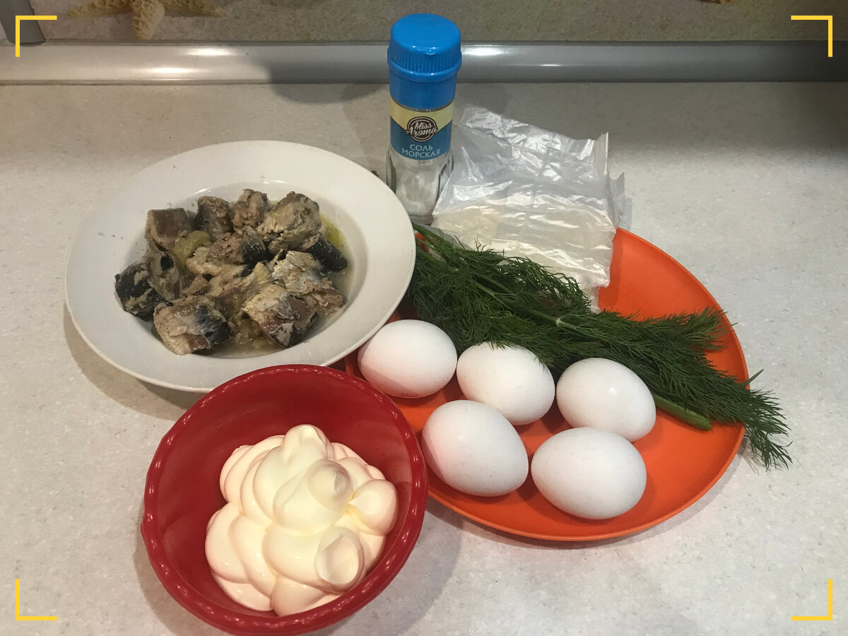 Такой салат можно подавать в качестве самостоятельного блюда, так как он получается очень сытным. Его можно подать на обед, ужин или перекус. И даже на праздничном столе он может занять почетное место, если выложить его слоями. Начнем приготовление. Что я взяла для салата: 1. Укроп помыла и мелко порубила. 2. Открыла рыбные консервы и слила с них жидкость. Размяла рыбу при помощи вилки. 3. Рис отварила до готовности и полностью остудила. Если рис отварить заранее, то приготовление будет более быстрым. А может у вас как раз остался отварной рис с обеда или ужина. 4. Отварила яйца вкрутую, остудила, почистила и нарезала маленькими кубиками. 5. Соединила все ингредиенты в одной миске. 6. Салат совсем немного посолила и добавила майонез. 7. Хорошо перемешала. Ароматный, сытный и вкусный салат готов. Можно сразу подавать на стол. Рыбу для салата можно выбрать другую, например горбушу. А заправить салат можно сметаной или натуральным йогуртом. Приятного аппетита!