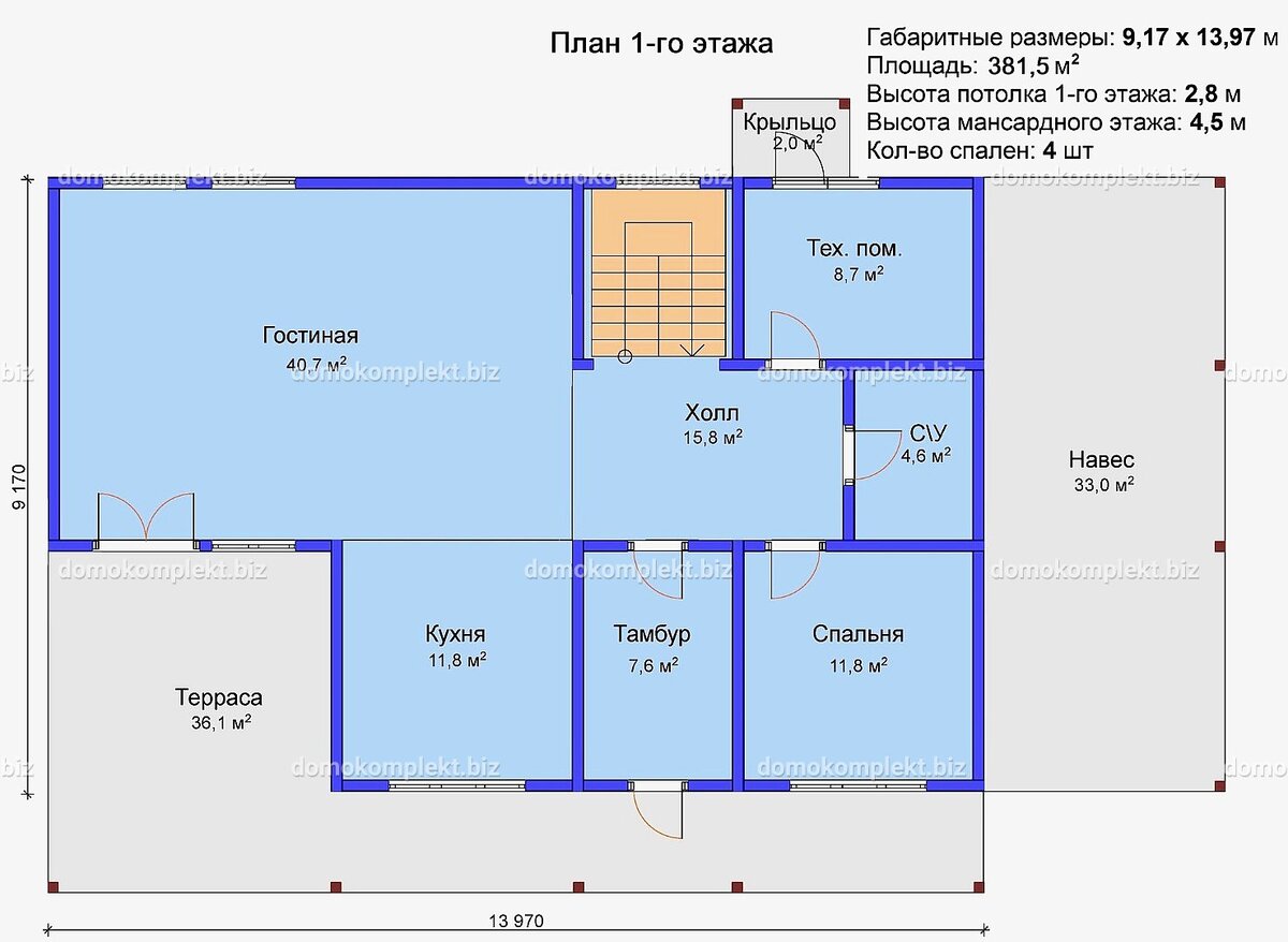 Загородный дом для большой семьи должен быть просторным и удобным. Обычно на первом этаже проектируют кухню, гостиную, технические помещения и санузел. Если у вас есть маленькие дети, рекомендуется сделать хотя бы одну спальню на нижнем этаже - для мамы с ребенком. Это позволит избежать лишних подъемов наверх для одевания или кормления малыша. Пожилые гости также смогут отдохнуть в этой комнате. На мансардном или втором этаже следует расположить спальню для родителей и комнаты для детей, а также санузел. Чтобы утром никто никому не мешал, гардеробную лучше вынести за пределы спальни. Это позволит каждому члену семьи спокойно готовиться к новому дню. Кроме того, важно учесть, что большая семья требует больше места для хранения вещей. Поэтому рекомендуется предусмотреть достаточное количество шкафов, полок и комодов. Также стоит обратить внимание на просторные общие зоны, где семья сможет проводить время вместе, например, просторную гостиную или столовую. Дом по проекту "Царицыно" -