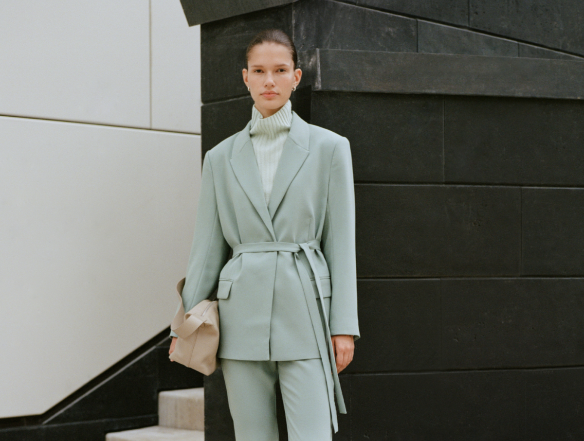 Белый верх и черный низ – это классика, но современная офисная мода более разнообразна в цветовом отношении. Выбирайте спокойные приглушенные оттенки, избегайте ярких цветов и привлекающих внимание принтов. Учитывайте, что с помощью костюма небанального оттенка вы сможете сделать образ более запоминающимся и интересным.