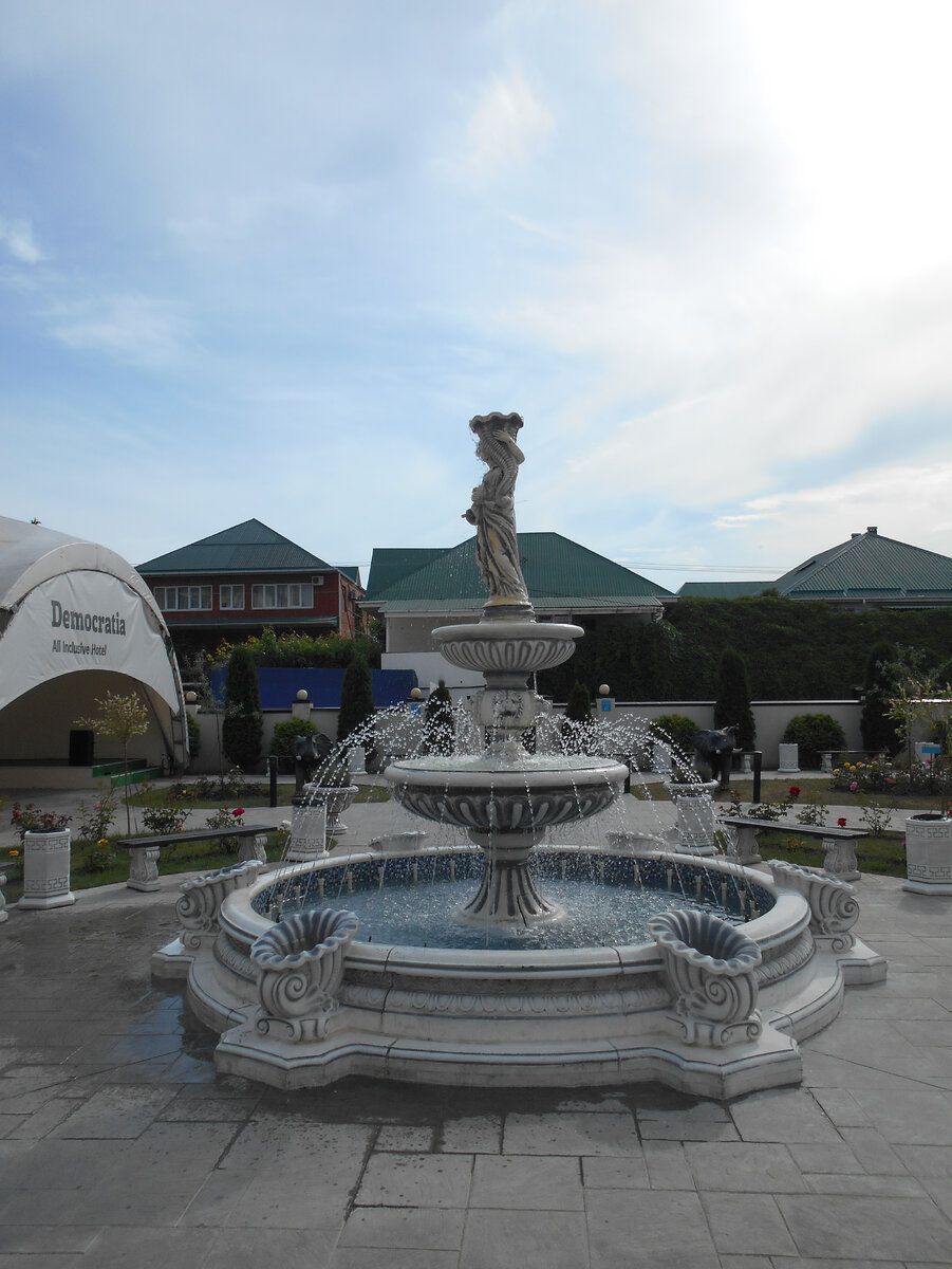 Территория. Маленький клочок земли в которую вошли статуи, клумбы с непонятными розами (после Болгарии и Крыма), сцена и беседка с неработающим минеральным буветом!