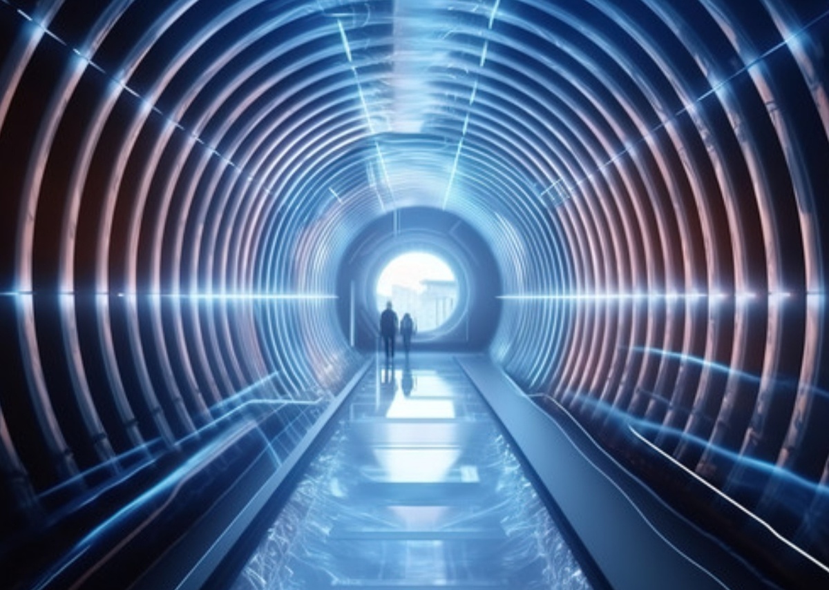 Есть туннель, пункт входа и выхода соединяющий точки А и Б. Человек заходит в пункт входа при выключенном туннели, затем он включается и происходит экранирование от пространства и времени. При частичной изоляции туннеля от пространства, плотность его в нутри становится меньше чем снаружи и соответственно расстояние тоже. С наруже километр, а в нутри изолированного туннеля 10 метров.