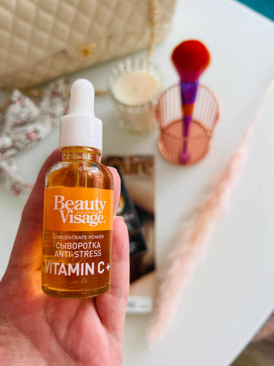 Сегодня рассказываю подробно о сыворотке для лица от Fito косметик anti-stress. Изготовлена она в России, в Московской области и купила я ее в Фикс прайс, всего за 99 руб. На других маркетплейсах вы тоже можете ее купить но дороже в 2-3 раза. Я уже писала об этой сыворотке в своих покупках в Фикс прайс постом ниже. Можете ознакомится. Почему я выбрала именно ее? Потому что люблю уход с витамином С и он мне подходит. Плюсы витамина С, как он воздействует на кожу? Витамин С участвует в синтезе коллагена; уменьшает синтез меланина и оказывает осветляющее и выравнивающее действие; снижает вредные последствия действия солнечных лучей; повышает защитные способности кожи и снижает интенсивность воспалений. Средства с витамином С выравнивают тон кожи и придают ей сияние изнутри и отдохнувший вид. По моему нам всем это не помешает верно? А теперь о сыворотке. Аромат у сыворотки как у фруктового сока, довольно приятный, текстура жидкая, быстро и легко распределяется. Что я заметила пре