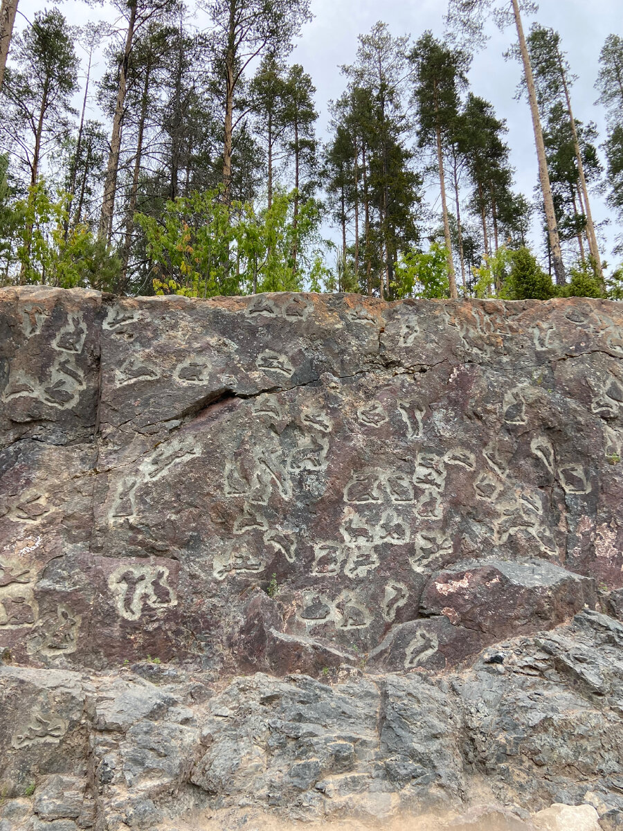 По дороге к нашей следующей остановке, мы увидели необычный арт-объект-Долина зайцев. Это скала, на которой вырезаны несколько сотен зайцев.Около каждого зайца, его порядковый номер. Она находится в 20 км к северу от Петрозаводска на трассе Р-21 «Кола». Арт-объект создан резчиком по камню, Сергеем Гапановичем.В 2018 году приступил к нанесению первых рисунков на скалу. Целью проекта было− украсить природный ландшафт вдоль федеральной трассы. Со слов автора, арт-объекта, рисунки наносятся при помощи шлифовальной машины и трехкилограммового молотка. На заключительном этапе рисунок прорабатывается алмазными фрезами. Как рассказывал создатель, в самом начале проект существовал только на деньги автора. Иногда, ему помогали друзья и волонтеры. Позднее появился сайт, где можно финансово поучаствовать в проекте, перевести деньги «зайцам на морковку». Самое главное, можно заказать собственного зайца. Сначала нужно выбрать рисунок и оплатить его, потом этот зайка получит свой номер. После нан