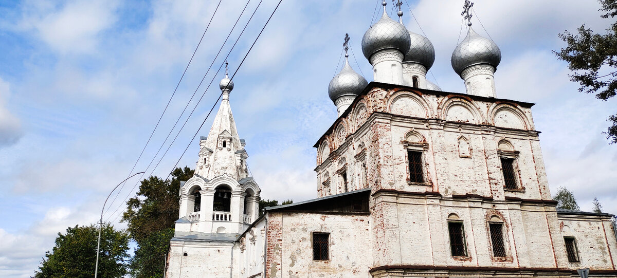 Но я же пришла сюда для того, чтобы увидеть все церкви, которые видела с кремлевской площади, поэтому сдаваться я не собиралась. Правда теперь я шла зигзагами. Кусочек по одному тротуару, кусочек по другому, и прихватывала проезжую часть. Где меньше было разрухи, там и шла. А если разруха была везде одинаковая, то я шла по траве вдоль берега. Для меня трава тоже не очень удобно, но на траве если не торопится , то прогулка становится вполне терпимой. Опять же с берега открывались чудесные виды на противоположный берег и на реку Вологду.