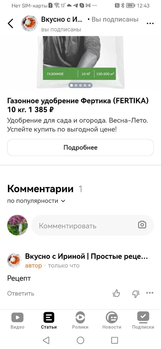 С телефона, где я авторизована на канале "С улыбкой по жизни", т.е. могу видеть студию и писать публикации, я зашла на свой же второй канал и написала тестовый комментарий. Смысла в нем, если что нет, просто первое, что пришло в голову.