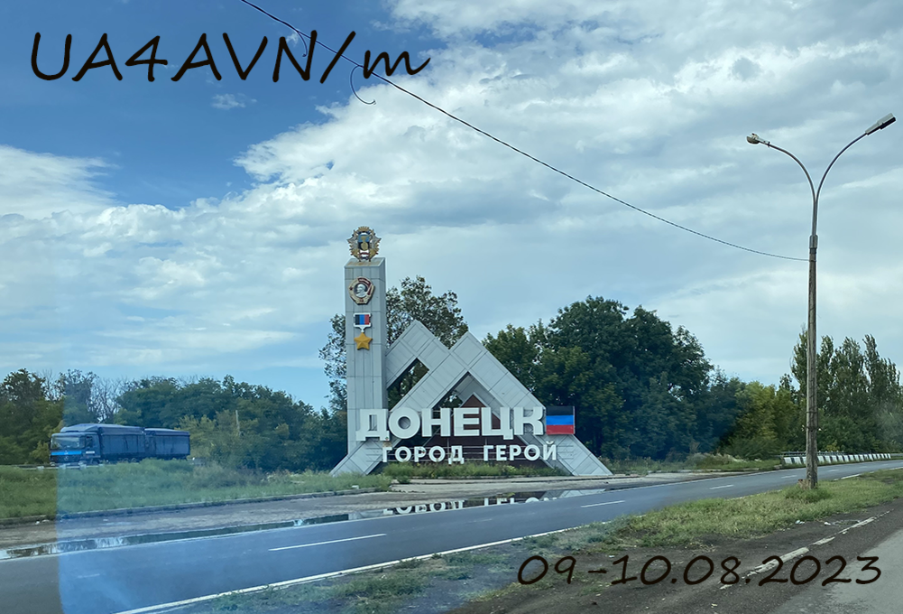 Заехав в Донецк, эфир на «двойке» ожил. Я стал принимать Донецких радиолюбителей, которые общались, обсуждая какие-то бытовые темы. Я дал вызов на 145.500 МГц и мне тут же откликнулся один местных D1… Перекинувшись парой фраз, тут же подключился и Виктор (D1DX). Однако, полноценного QSO не получилось, связь прерывалась и в конечном итоге он перестал меня принимать. Донецк – холмистый город. Наш автомобиль то съезжал с холма, то выскакивал на него ненадолго. В общем, эфир у них в Донецке активно живёт, не смотря ни на что.