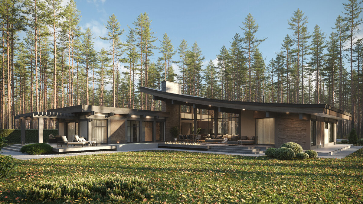Элегантное слияние пространства и стиля: одноэтажный дом 308 м² с уникальной радиусной кровлей