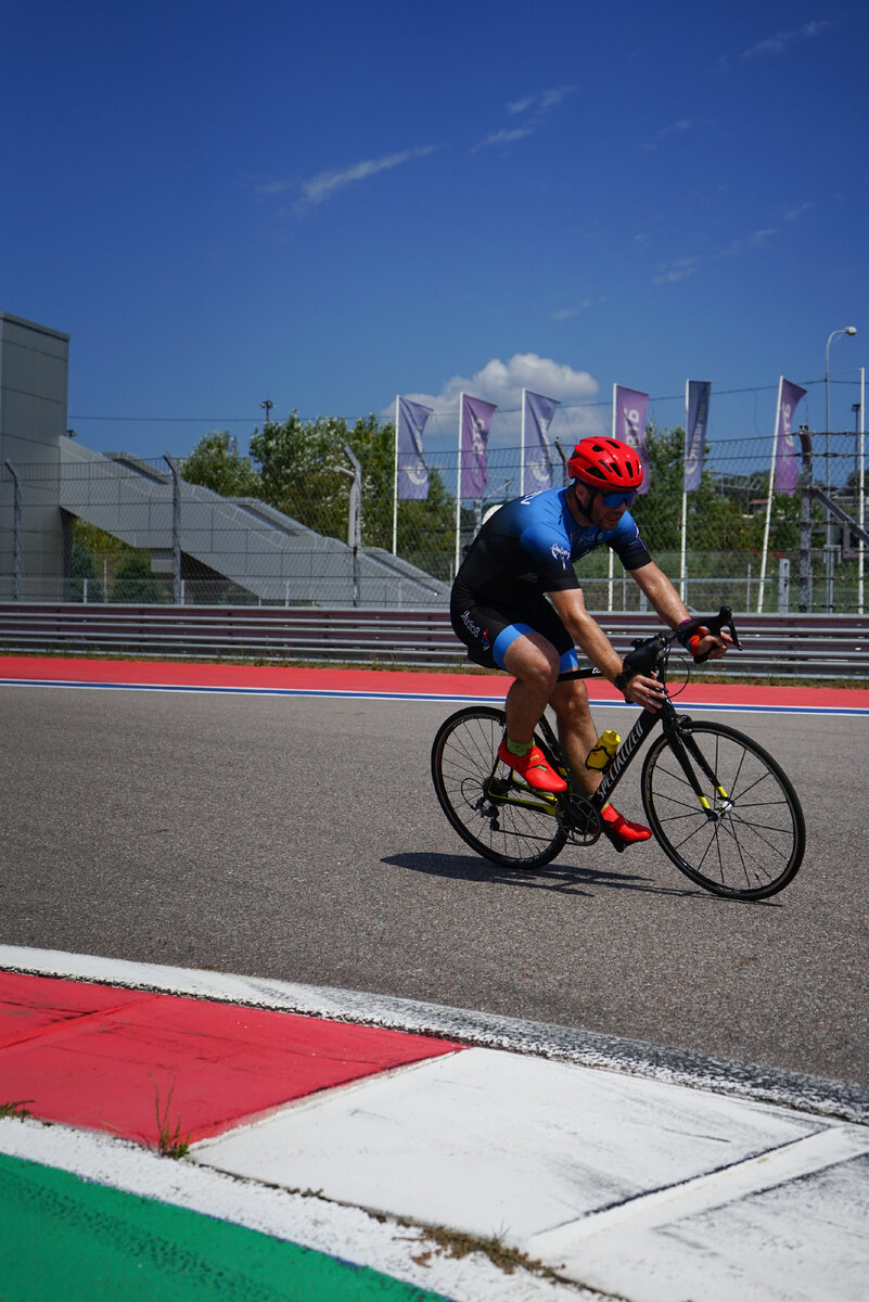 21 августа проходил Чемпионат Сочи по триатлону на олимпийской дистанции. Кто не знает, это 1,5 км плавание + 40 км велосипед + 10 км бег. Плавали мы в открытой воде на пляже «Роза Хутор», а крутили педали и бежали на трассе Формулы-1 Сочи Автодроме. "Кстати, кто не знал, по понедельникам туда бесплатный проход и можно покататься на велосипеде Поскольку классическую транзитку организовать было невозможно из-за удаления мест этапов, то организаторы клуб S8 Сочи решили сделать старт по гандикапу. Я стартовал последним потому что не стал плыть всю дистанцию — не смог. Не тренировался в бассейне с конца апреля, да и ранее плавание моё оставляло желать лучшего. Велик, несмотря на жару прошёл бодро. Трасса ровная и очень скоростная. Пытался несколько раз сесть на колесо лидерам, которые обогнали меня на круг, но больше одного круга сидеть не получалось — очень мощные ребята. На бег я вышел в очень хорошем настроении, но оно быстро закончилось за поворотом через 700-800 метров. Ветер под