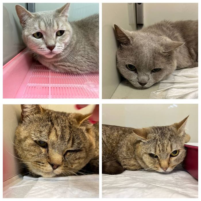 Всем привет. Вот оставшиеся 4 котика. Метисы бриташек. Сейчас всё ещё в стационаре. Им очень нужны дома: 1. Из-за стресса у самих животных. 2. Из-за долга, который в клинике растет у группы помощи, которая этими котиками решила заняться.