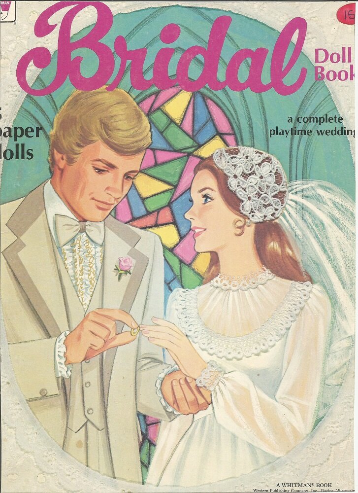 Название: Bridal Страна: США Издательство: Whitman Год: 1978 Сегодня подошла очередь свадебного набора кукол, в котором отражены моменты самого интересного и волнительного для каждой девушки, события. Набор выпущен в виде книжки, где на передней обложке молодожёны обмениваются кольцами, а на задней - невеста по традиции бросает свой свадебный букет в толпу подружек. Обложки супер классные, на них невозможно смотреть без восхищения! В набор входят пять кукол: обворожительная красавица невеста, жених, который немножко напоминает Кена, подружка невесты, шафер и девочка - цветочница. Помимо свадебного убранства для всех пяти кукол, в наборе присутствует и повседневная одежда. Не знаю как вы, а я была очарована этим набором, как только его увидела. Покупала я его ещё в 2015 году в неразрезанном виде, и всё не решалась его разрезать, просто любовалась... И только недавно, перед открытием своего блога решилась на это.