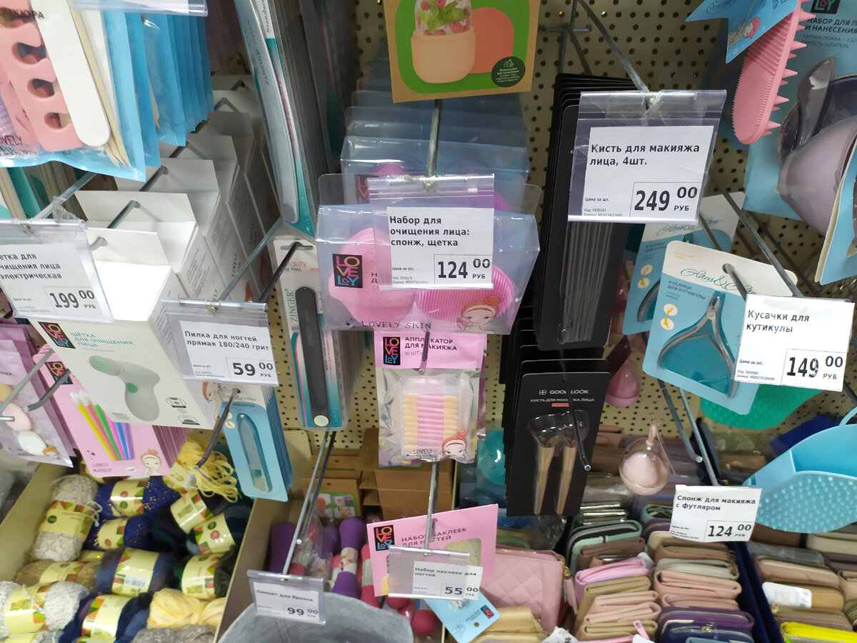 Вернулась из Фикс Прайс с новинками, привезли немало нового товара, думаю, найдутся покупатели. Некоторые новинки разбирают, и я купила. Что появилось на витрине и можно купить не без пользы? Здравствуйте, мои дорогие! Маленький, едва заметный на витрине набор. А если вдруг содержимое закончится, сразу ищем, где поскорее купить. Что за новинка? Появились аппликаторы для макияжа, для растушевки, подправить макияж. В наборе 10 двусторонних аппликаторов, за 59р. Что еще пригодится? Губка. А куда без нее. Нашла на витрине губки овальной формы, не маленькие, и не огромные. Мягкие, не сильно упругие. Сверху слой для массажного эффекта. По 39,5р. Искала ершики, не было, купила дороже в Галамарте. А тут как раз и в Фикс Прайс привезли. Ручка не тонкая, пластиковая с колечком - можно подвесить. Сам по себе ершик не рыхлый, ворсинки не торчат в разные стороны, одна к другой. Кто хотел обновить коврик, привезли. Напомнил часть дорожки, может быть так и было. Это потому что узор не симметри