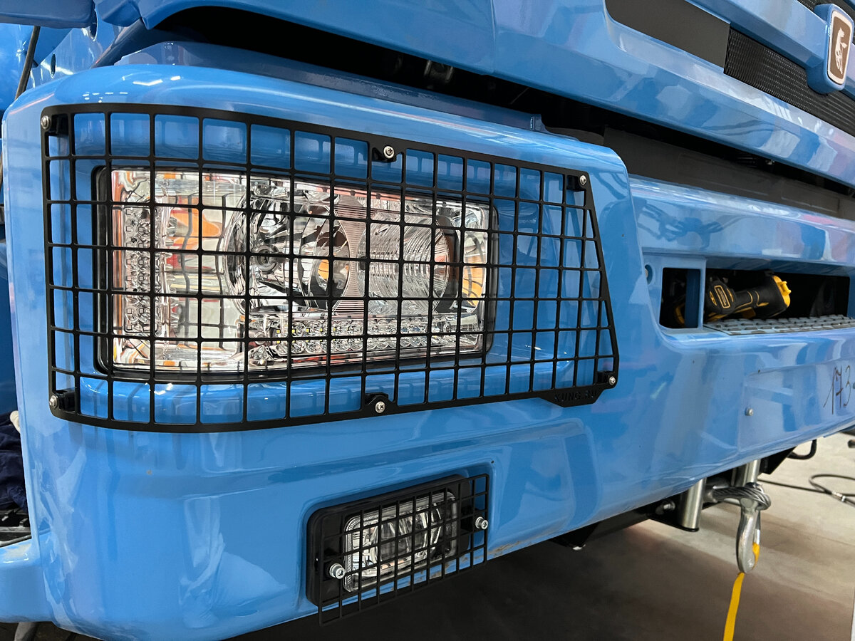 Мы производим автодома уже очень давно и в процессе своей работы столкнулись с тем, что готовые решения защиты фар КАМАЗа не соответствуют нашим высоким стандартам качества. В связи с этим благодаря плодотворной работе наших конструкторов и сотрудников производства мы спроектировали и изготовили новый продукт - защитные решетки для штатной оптики КАМАЗ 43118. Они предназначены как для головного света, так и для противотуманных фонарей.