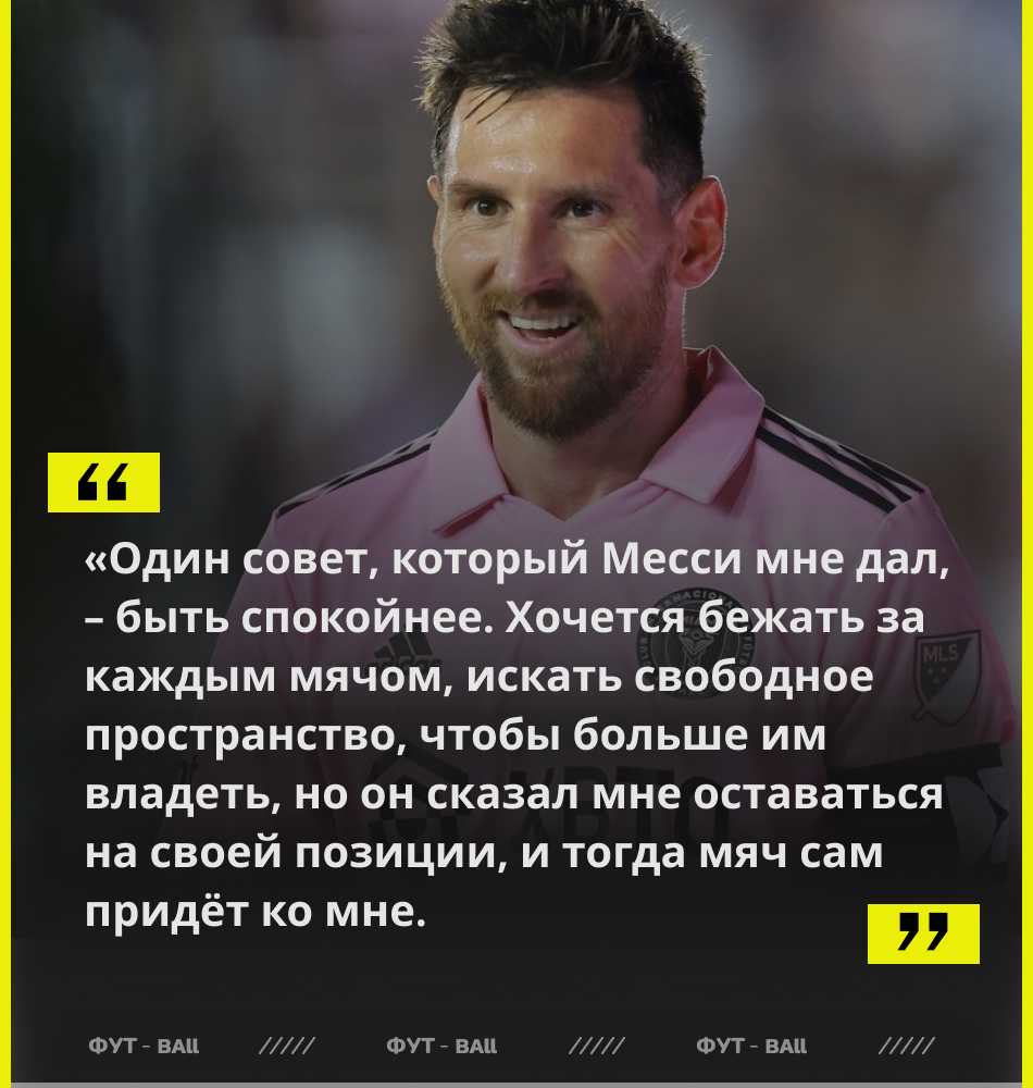 Игрок "Интер Майами" дал интервью, в котором он поделился советом, полученным от Лионеля Месси.
