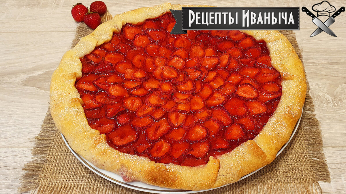 В этой статье я хочу поделиться с Вами рецептом быстрого пирога, со свежей клубникой. Готовится он максимально просто, а получается очень вкусным! Для приготовления такого пирога нам понадобится: Способ приготовления пирога с клубникой: Итак, наливаем в ковшик воду и растительное масло. Доводим до кипения. Муку просеиваем через сито. В емкость с мукой добавляем соль и разрыхлитель. Наливаем сверху вскипячённую воду и растительное масло. Замешиваем тесто лопаткой в течение примерно 1,5 – 2 минуты. Далее домешиваем тесто руками примерно 1 минуту. Оставляем тесто полностью остыть. Кладем в емкость сахар и крахмал. Все перемешиваем. Клубнику нарезаем на кусочки шириной примерно 5 мм. Берем бумагу для выпечки, размером примерно 35 на 35 см и кладем в центр остывшее тесто. Формируем из теста руками ровный круг, размером в диаметре примерно 20 см. Далее раскатываем тесто скалкой до размера примерно 33 см в диаметре. Стараемся, чтобы тесто было одинаковой толщины и ровной формы. Высыпаем на те