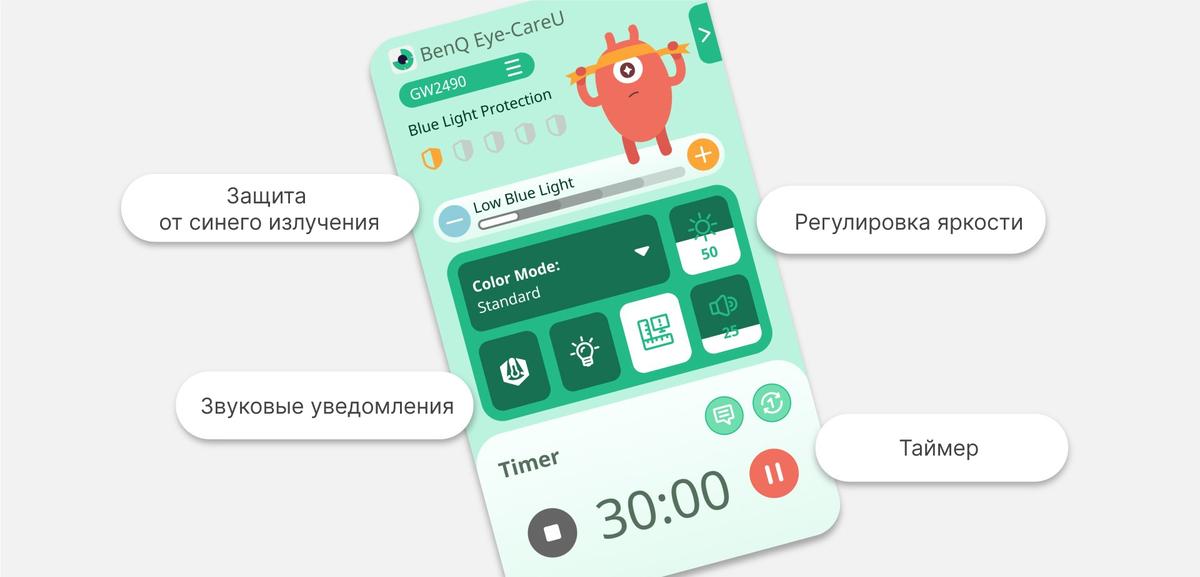 Программное обеспечение BenQ Eye-CareU для снижения нагрузки на зрение