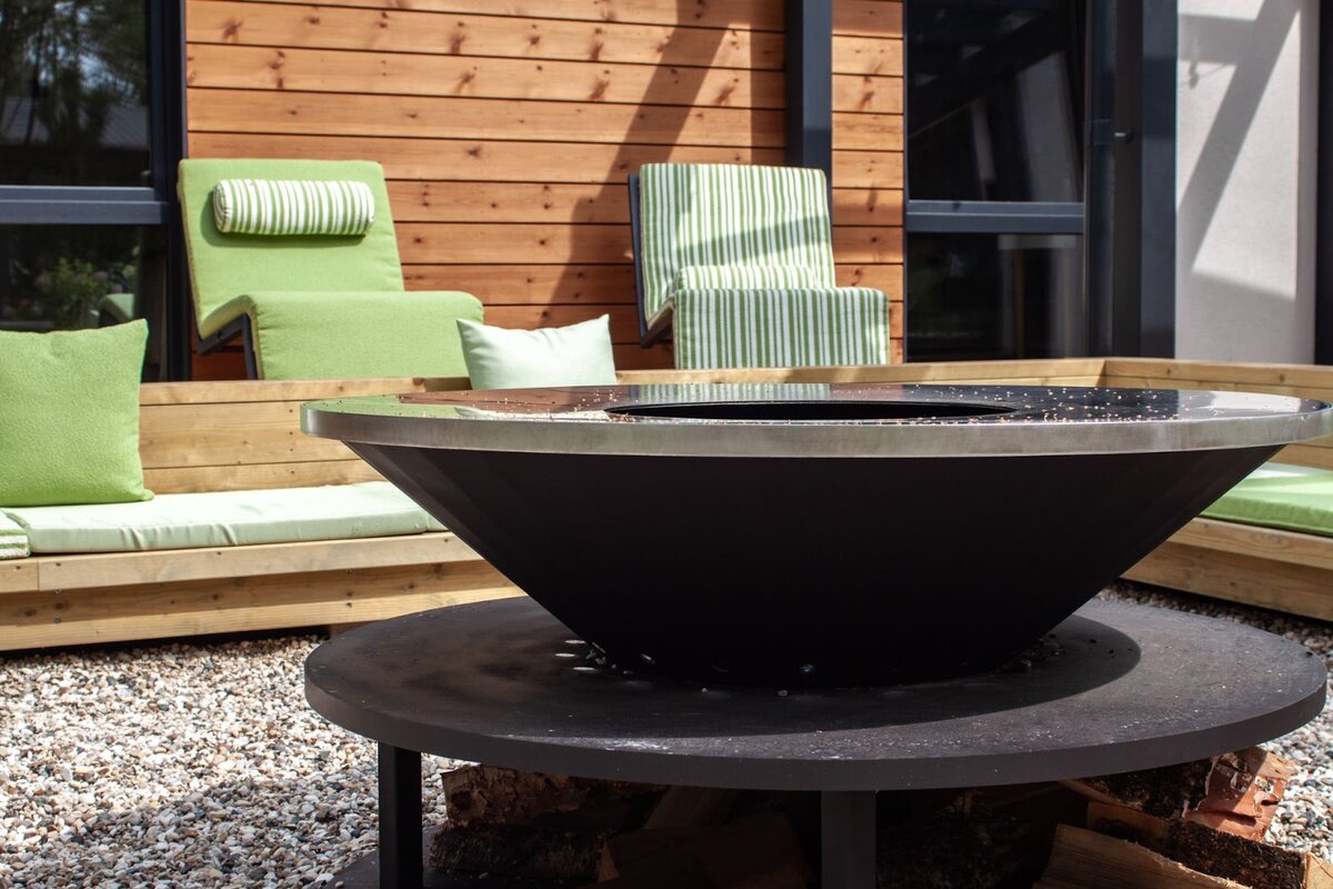 Когда говорят об оформлении загородного участка, в первую очередь подразумевают ландшафтный дизайн: газоны и дорожки, деревья, кустарники и цветы, террасы, иногда водоемы. Но не стоит забывать про еще один важный элемент в оформлении участка и загородной жизни в целом — мебель для улицы. На примере комплекта, который мы изготовили для домовладения от Izburg (Избург) на выставке Open Village, показываем, как с помощью мебели можно сделать свой участок уютным, создать определенный стиль и настроение. Для террас и костровой зоны мы изготовили целый комплект уличной мебели: диван и кресла, журнальный и обеденный столы, шезлонги и лежаки, очаг-барбекю и дровницы. Вся мебель выполнена в едином стиле. Основной материал — металл, дополнительно использован натуральный дуб и кварцевый агломерат для столешниц. Металл мы использовали толщиной не менее 2 мм. Так мебель получается долговечной даже в условиях улицы, крепкой — не пружинит и не гнется, и тяжелой — даже сильный ветер не сдвинет ее с мес