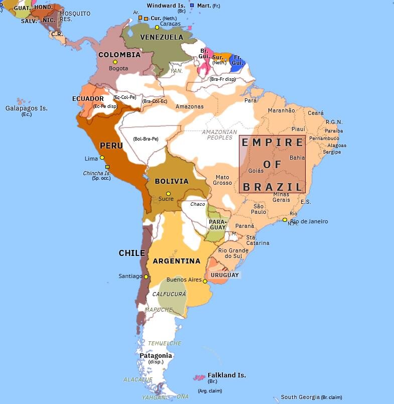 В центре конфликта оказался Парагвай – один из осколков некогда практически бескрайней Испанской колониальной империи. В 1810 году вице-королевство Рио-де-ла-Плата (отделившееся 34 годами раньше от Вице-королевства Перу) распалось на Аргентину, Уругвай, Парагвай и Боливию. Отнюдь не все колонии стремились к независимости: если в Аргентине верх взяли сторонники отделения, то в Парагвае напротив, поддерживали королевскую власть. Бывшие провинции вице-королевства даже немного повоевали друг с другом из-за этого, но, по европейским меркам их война даже на хорошую стычку не тянула: 6-7 тыс. участников с обеих сторон суммарно. Не сумев разбить противника, аргентинцы на какое-то время оставили северных соседей в покое, и Парагвай пошел «своим уникальным путем».