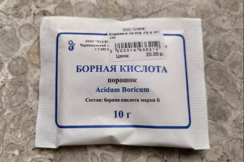 Все это можно обрабатывать для увеличения числа завязей обычным бором. Приобретаем в аптеке борный порошок и разводим пакетик в 10 л воды.