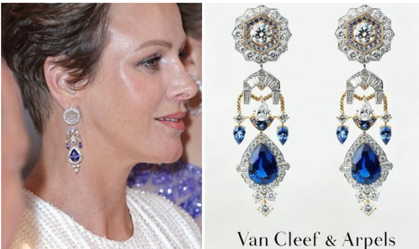 74-й Бал Красного Креста 2023 - одно из самых важных мероприятий в социальной повестке дня княжества. Княгиня Монако Шарлен выбрала ослепительный образ. На балу, в котором она непрерывно участвует с 2006 года, Шарлен появилась в белом платье, подчеркнутом драгоценностями необычайной ценности! Шарлен прибыла под руку со своим супругом Альбертом. Княжеская чета прибыла на вечеринку во всем белом. Для завершения образа клатч того же цвета: Белое платье до пят, с круглым вырезом и прозрачными рукавами, покрыто кристаллами. Наряд Шарлен украсили потрясающие украшения, способные даже затмить драгоценное обручальное кольцо Repossi, надетое на безымянный палец левой руки. Что касается украшений, Шарлен надела пару серег и внушительное кольцо ювелирного дома Van Cleef & Arpels, которые она еще никогда не носила на публике. Бывшая пловчиха остановила свой выбор на серьгах «Lovia», из коллекции «Ромео и Джульетта», состоящих из белого золота, розового золота, бриллиантов, сапфиров, в том числе