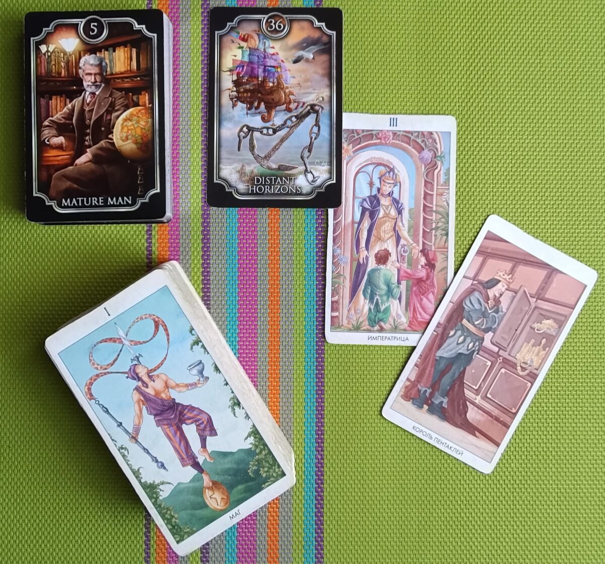 Дамы, внимание, вам выходит «Императрица» и её планы «Дальние горизонты». Прямо скажу всё может быть не так радостно по итогу или вообще не реализоваться. Будьте бдительны. Влияние на ваше состояние благополучия, получения прибыли, развития будет влиять «Король пентаклей», человек тоже заинтересованный в прибыли или в вас на перспективу. Если по факту окажется знакомство или общение с мужчиной, он будет женатым и очень основательным, на него планы можно не строить. Если речь пойдёт о деньгах, развитии, тоже лучше не обольщаться. Дно колоды аркан «Маг», обычно это человек ловкий, способный, знающий, как подойти и что сказать.