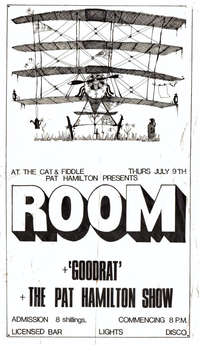 Началом ROOM стал тот момент, когда несколько приятелей, проживавших в Блэндфорде, что в графстве Дорсет, собрали группу, чтобы немного повеселиться, а попутно заработать сказочное состояние, выступая в местных деревенских пабах, залах школ и церквушек. На дворе стоял 1968 год, расцвет “детей цветочной эпохи”, в воздухе витал дух Хендрикса и серебряных гитарных струн. Со временем группа набралась опыта и двинулась вверх по карьерной лестнице, выступая уже по всей стране и записав в итоге пластинку, альбом 1970 года Pre-Flight, где группа продемонстрировала миру хорошо структурированный, основанный на жестком блюзе, прог-рок с набегами на территории джаза. Концерты стали более частыми и массовыми, достигнув апогея выступлением в лондонском Royal Ballrooms, поделив афишу с такими коллективами, как PINK FLOYD и STATUS QUO…