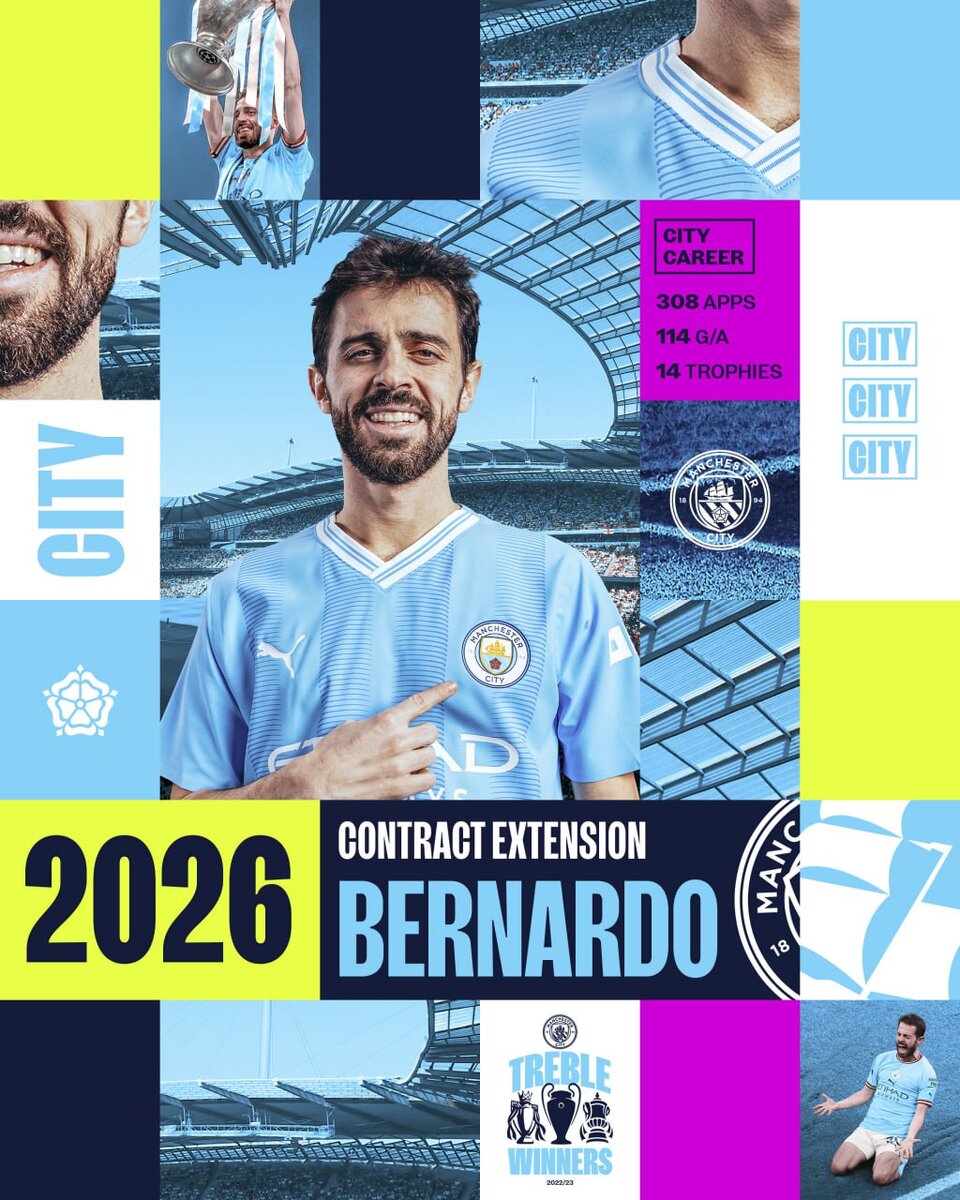⚡️Бернарду Силва продлил контракт с «Манчестер Сити»! Соглашение между сторонами рассчитано до 2026 года.