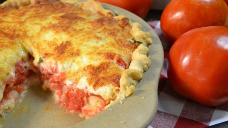 Если вы хотите вкусно и необычно израсходовать урожай томатов, обратите внимание на этот томатный пирог! Свежие помидоры, выложенные слоями на начинку из сыра и майонеза, делают это простым, но вкусным блюдом. Он должен вам понравиться😋 Ингредиенты Тесто для основы: Начинка: ВАЖНО: Чтобы пирог не превратился в суп! Перед запеканием важно удалить из помидоров как можно больше влаги. Если останется слишком много, ваш томатный пирог может стать слишком жидким, а мы этого не хотим! Пока помидоры сохнут, вы можете запечь основу для пирога. Шаг 1 Готовьте пустую основу в форме для пирога около 10 минут в духовке, разогретой до 200 градусов. Обязательно проделайте отверстия, например, вилкой в нижней части. Шаг 2 В миске смешайте сыр (вкуснее с разными видами сыра, я предлагаю чеддер и моцареллу, но вы можете ограничится одним видом на сой вкус), майонез, чеснок, орегано, соль, черный перец и острый перец. Шаг 3 Выложите част получившейся смеси в форму для пирога. Распределите так, чтобы по
