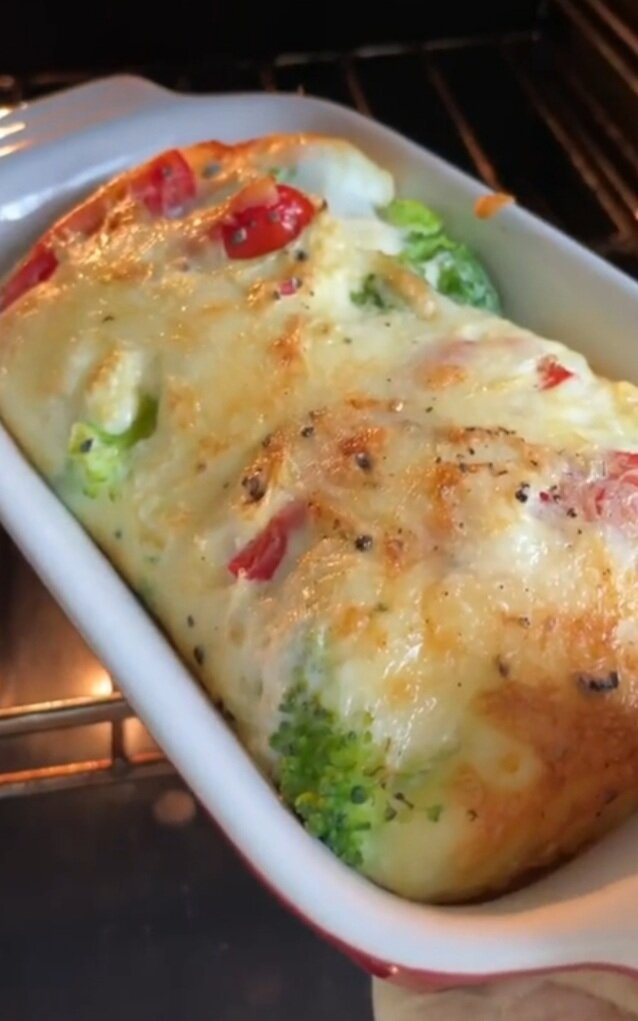 Понадобится: Брокколи Сыр Черри Яйца Молоко Соль, перец Готовим: Брокколи отварить 3-5 мин, разобрать на соцветия. Сыр трём на терке. Черри нарезаем помельче. В два яйца добавляем столовую ложку молока, перемешиваем, солим. Форму смазываем маслом, выкладываем брокколи, помидор, заливаем яйцом, посыпаем сыром. И в духовку при 180гр на 15-20 мин. Приятного аппетита!