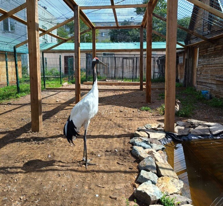 В Читинском зоопарке за счет собственных средств построили новый вольер для японского журавля по кличке Император.